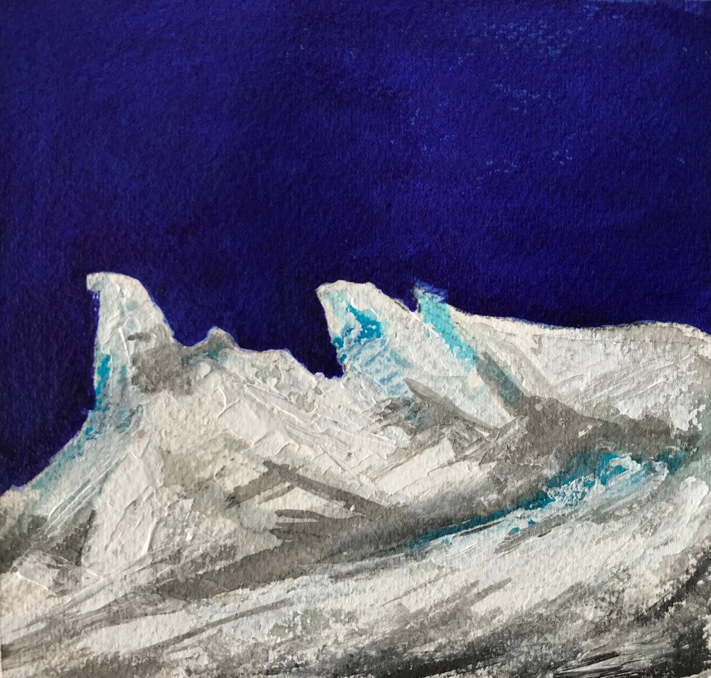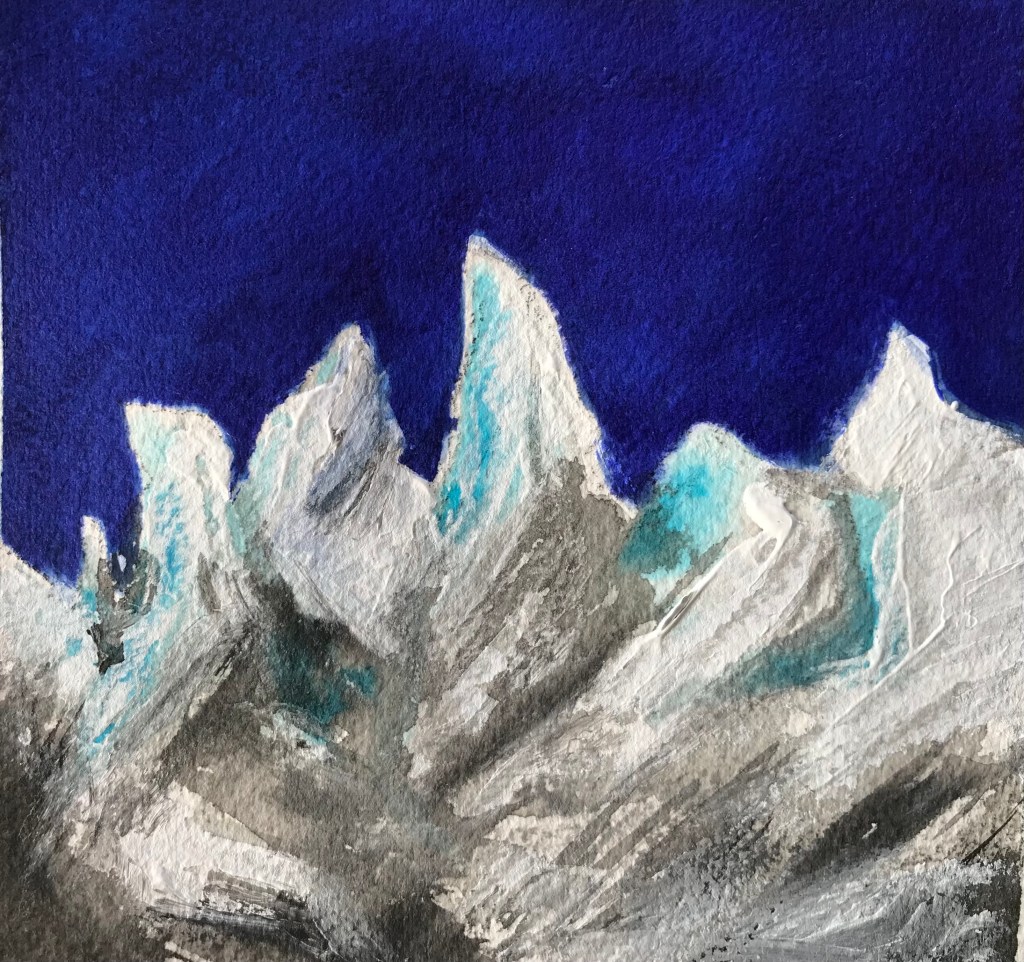 Etudes Glacier du Tour, Aquarelle et Acrylique, 12 x 12 cm, Collection particulière, 2023